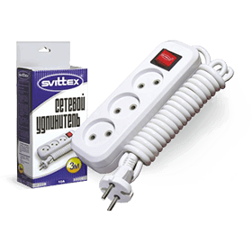 SV-012-3. Удлинитель SVITTEX с трехместной розеткой и выключателем (3 м) Напряжение: 220..250 В. Номинальный ток: 10 А. Частота тока: 50/60 Гц. Климатическое исполнение: УХЛ4. Степень защиты: IP 20. Сечение проводников: 2х0,75 мм². Материал корпуса: пластик ABS. Материал вставки: негорючий пластик ABS. Материал контактной группы: латунь. Макс. мощность: 2,2 кВт. Длина шнура: 3 м. Входные розетки: EURO/RUS