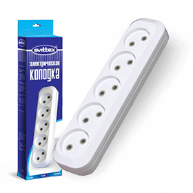 SV-014. Розетка (колодка) SVITTEX пятиместная. Напряжение: 220..250 В. Номинальный ток: 10 А. Частота тока: 50/60 Гц. Климатическое исполнение: УХЛ4. Степень защиты: IP 20. Сечение присоед. проводов: от 0,75 до 1,5 мм². Материал корпуса: пластик ABS. Материал вставки: негорючий пластик ABS. Материал контактной группы: латунь. Макс. мощность: 2,2 кВт. Входные розетки: EURO/RUS