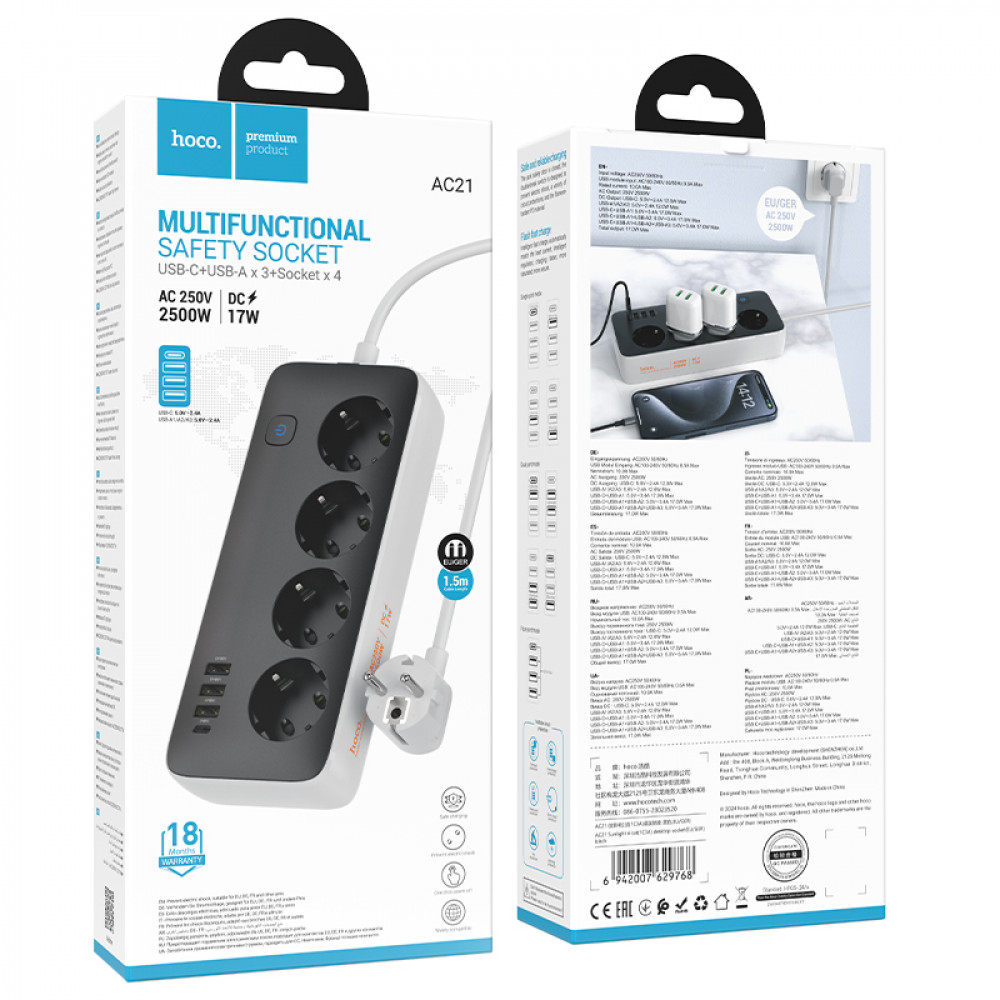 Защитные функции: Огнестойкий материал корпуса из поликарбоната и встроенные средства защиты помогают защитить ваши устройства от скачков напряжения, перегрузок и коротких замыканий.