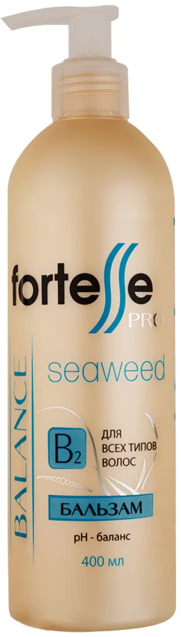 Бальзам «Fortesse PRO» B2 Баланс 400 мл з екстрактом морських водоростей. Відновлює кислотно-лужний баланс шкіри голови. Перешкоджає появі лупи. Відновлює пошкоджене волосся, а так само зволожує при цьому, не перевантажуючи їх, роблячи їх м'якими і блискучими