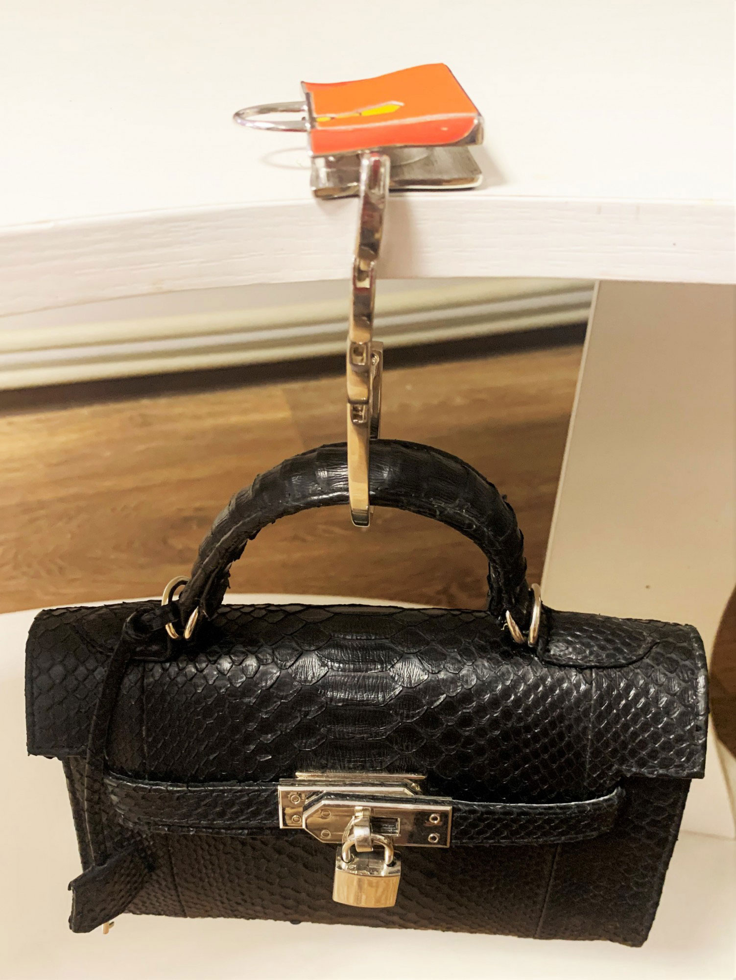 Теперь вы всегда можете сидеть где угодно - в кафе, ресторане, офисе - и без проблем достать этот красивый и удобный аксессуар, чтобы не держать больше сумку в руках.