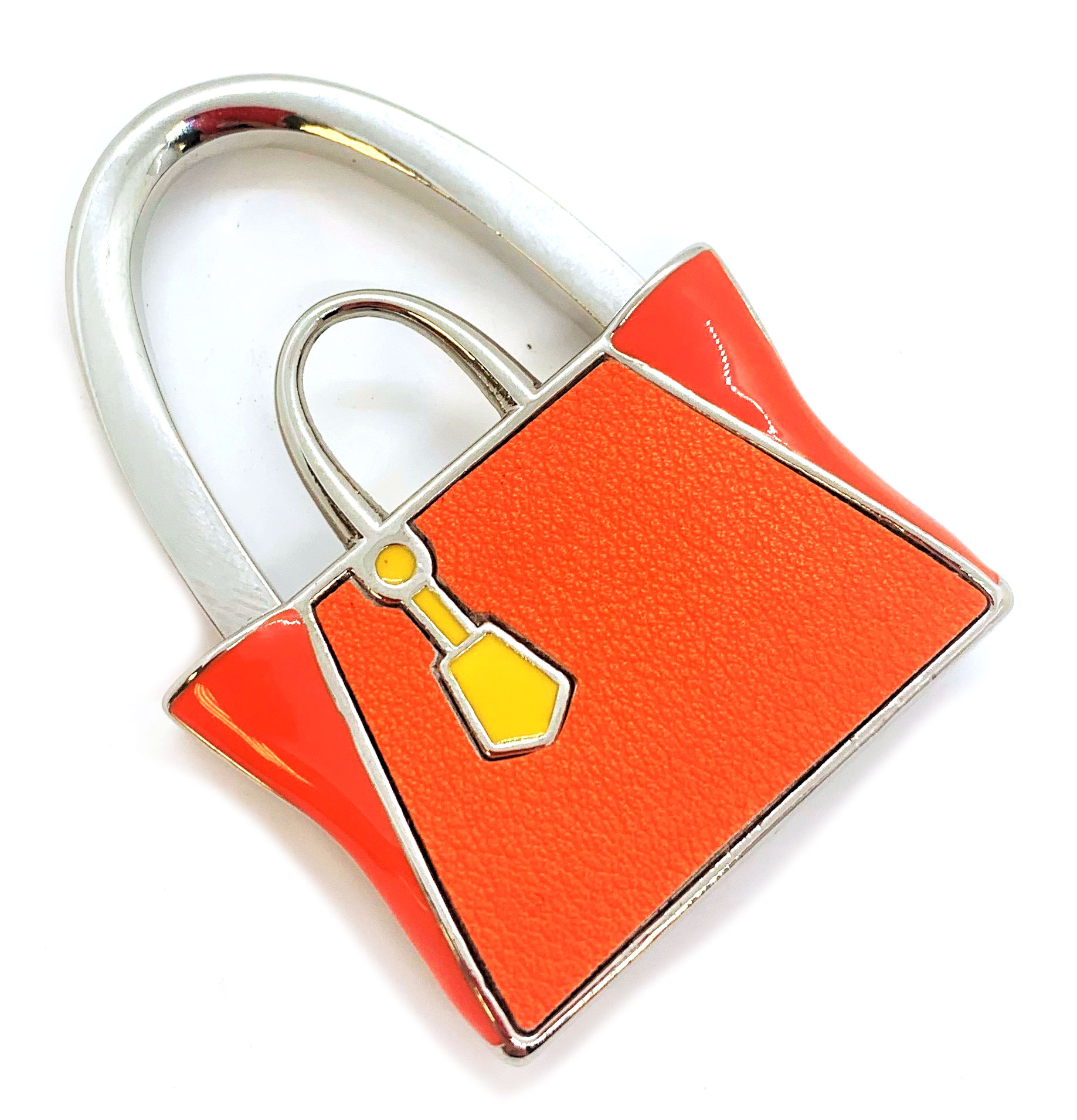 Сумкодержатель имеет размеры 68х50х18 мм, что позволяет легко поместить его в карман или сумку без занимания много места. Он выполнен в оранжевом цвете, который придаст яркость и стиль вашему аксессуару.