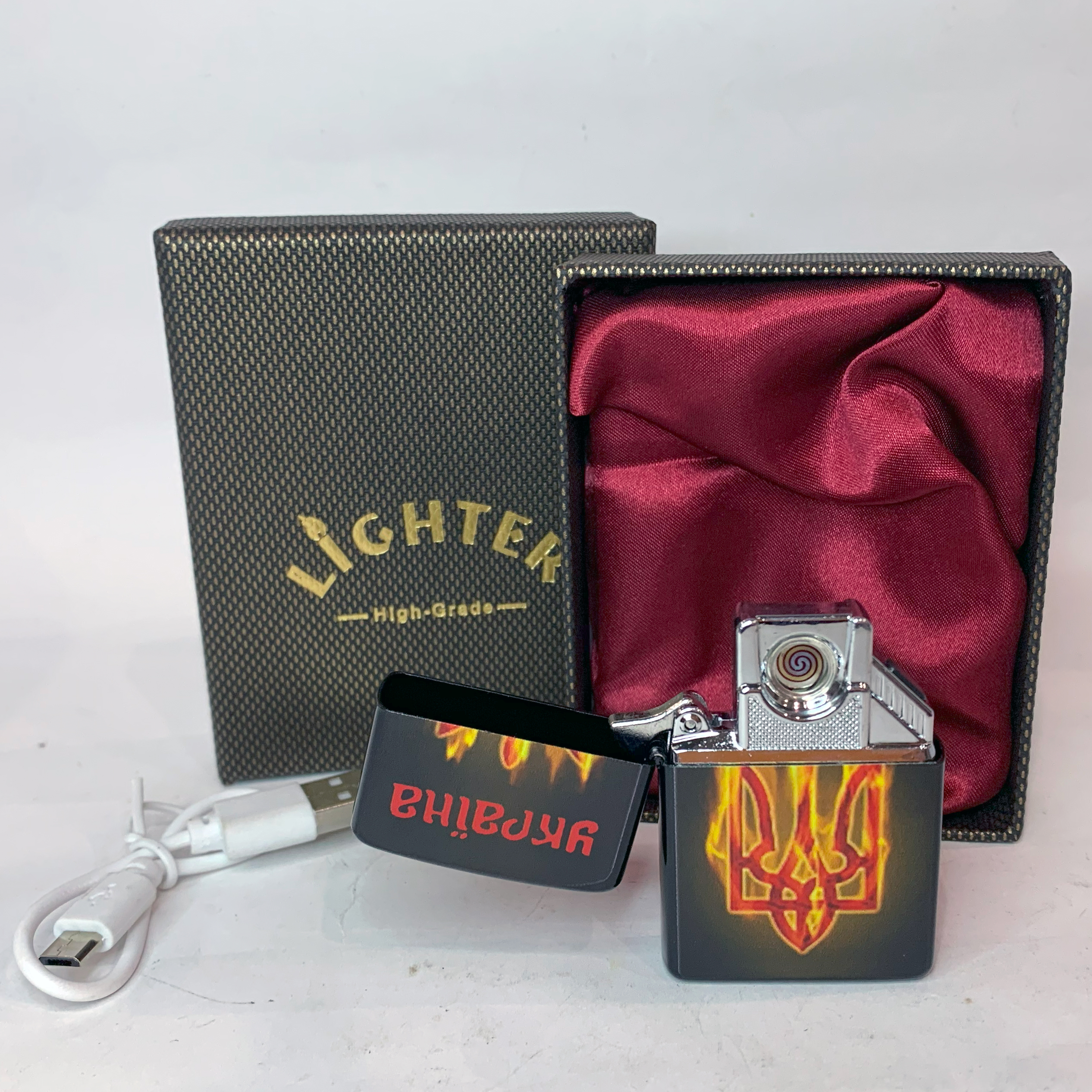 Электрическая USB-зажигалка Герб Украины в огне