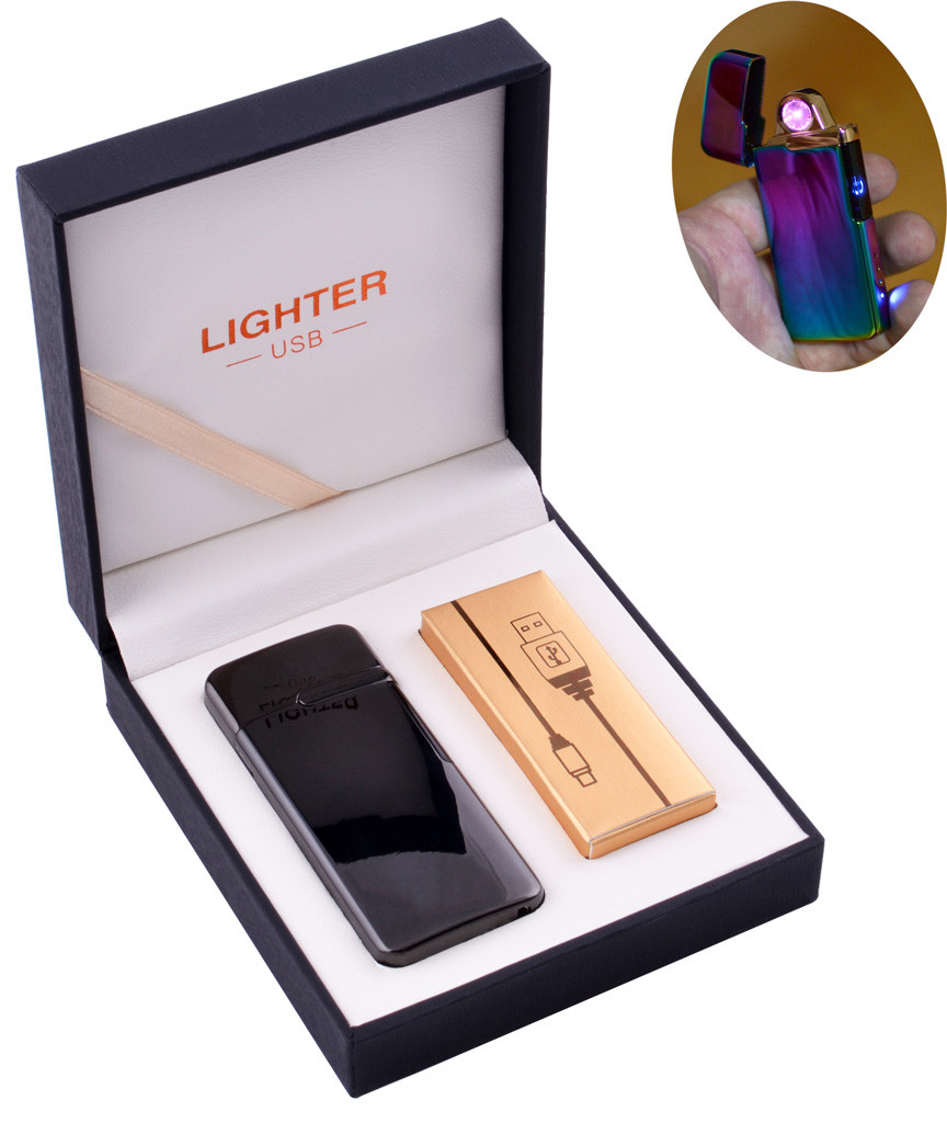 Электроимпульсная зажигалка в подарочной коробке LIGHTER (USB) №HL-122 Black