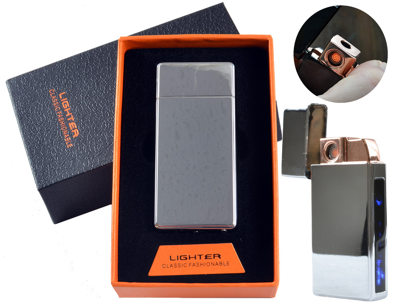 USB зажигалка-часы в подарочной коробке JIAHENG (Спираль накаливания) №4829-3