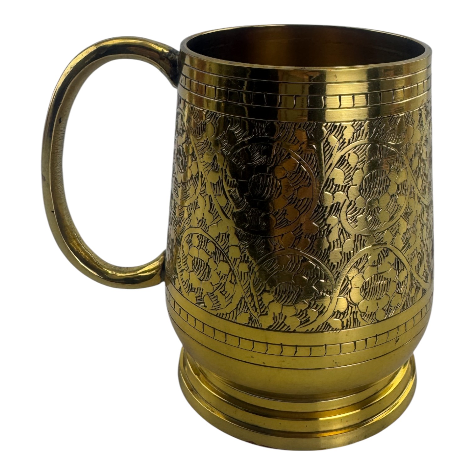Бронзовая кружка с позолоченным покрытием — эффектный и массивный предмет, сочетающий практичность и декоративную выразительность. Подходит для сервировки напитков, фотосессий, тематических интерьеров и коллекций. Классический дизайн и металлический блеск придают изделию солидный и винтажный вид.