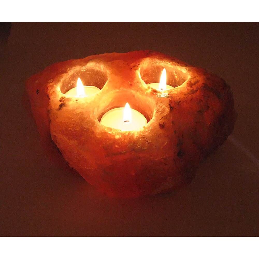Подсвечник соляной тройной 'Natural' 2,6кг. (ch-11)(+-22х19х10 cm)(12 шт ящ.)(Гималайская соль)