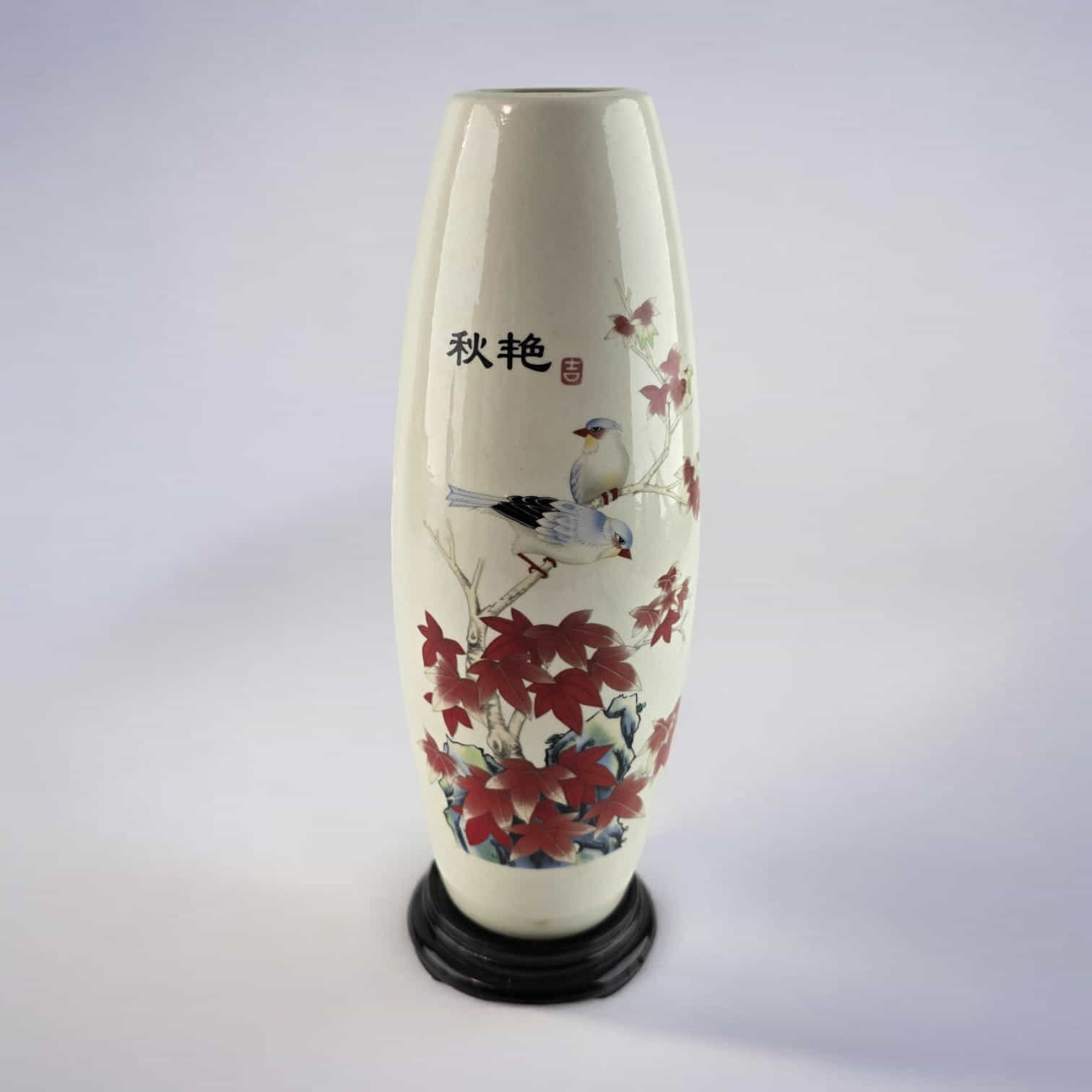 Представляем изящную фарфоровую вазу "Птицы на ветке", которая станет утончённым акцентом в вашем интерьере. Ваза украшена изысканным рисунком, изображающим птиц, уютно расположившихся на ветке с яркими красными цветами.