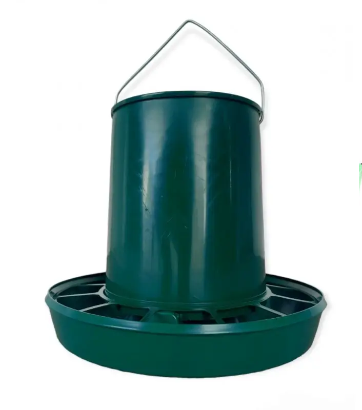 Емкость позволяет загружать 6 кг зерна. Особенностью кормушки является хорошая устойчивость на поверхности, легкость в обслуживании.