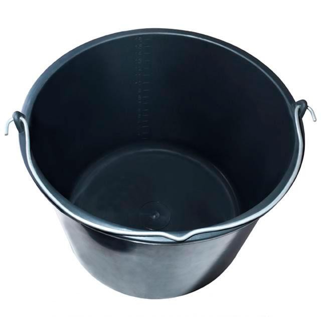 Функциональность ведра расширена нанесенной на внутренней стенке литровой разметкой, что упрощает замеры необходимого количества материала. Стенки же легко очищаются от строительных растворов.