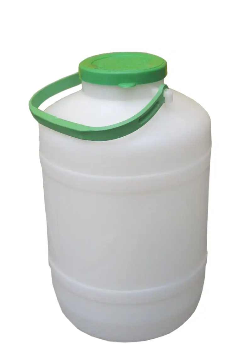 Бочка пищевая полиэтиленовая номинальным объемом 5 литров. Выполнена в виде бидона, сверху имеется горловина стандартного диаметра, что делает удобным процедуру заполнения емкости. Горловина плотно закрывается крышкой (как банка), что дает возможность уберечь содержимое бидона от попадания вовнутрь воздуха, нежелательных примесей, мусора, запаха. Перекидная, плотная, широкая ручка, расположенная рядом с крышкой, делает удобным процесс транспортировки (переноса) заполненной емкости при максимальной загрузке. Качество используемого для производства материала, позволяет хранить в бидоне холодные пищевые продукты, что существенно расширяет сферу применения данного изделия.