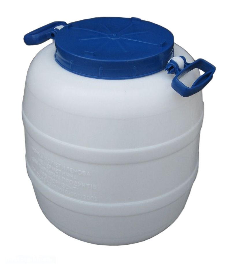 Данная бочка предназначена для хранения, приготовления, переноса продуктов питания, а также всех остальных веществ. Бочка не герметичная. Выполненная согласно соответствующим техническим условия. Бочка белого цвета, изготовлена из пищевого полиэтилена, рассчитана на 40 литров. Качество исходного материала позволяет хранить в бочке холодные пищевые продукты, что расширяет сферу применения данной емкости в домашнем хозяйстве. В верхней части бочки имеется широкая горловина, через которую удобно заливать (засыпать) жидкости или сыпучие материалы. Горловина закрывается завинчивающейся крышкой. Такая конструкция предохраняет содержимое бочки от попадания воздуха, пыли и других ненужных веществ. В верхней части, по бокам от горловины, расположены крепкие ручки, которые позволяют транспортировать бочку при максимальной загрузке. Стенки бочки эластичные, плотные, способны выдержать предельную нагрузку и устойчивы к механическим ударам.