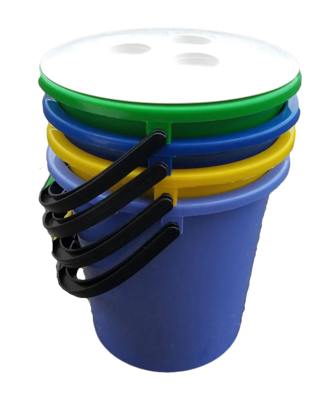 Функциональное ведро из пищевого пластика номинальным объемом 10 литров. Исходный материал для производства ведра – полипропилен. Ведро, кроме привлекательных внешних данных, имеет и целый ряд функциональных особенностей, что значительно расширяет его применение, при сравнении с обычным ведром на 10 литров. Само ведро, при стандартных параметрах, имеет на внутренней стенке мерную шкалу, что позволяет визуально определять объем. Кроме того, имеется носик для слива и углубление для пальцев руки на нижней части ведра, что делает слив жидкости направленным и удобным. Усиленная ручка придает дополнительную прочность при максимальной загрузке. Пищевая пластмасса, используемая при производстве, делает ведро пригодным для пищевых продуктов и хранения холодной воды. На дне ведра располагаются логотип компании-производителя, указание на объем ведра и знак пищевой пластмассы. Имеются соответствующие сертификаты качества. Ведро идет в комплекте с крышкой из пищевого пластика, белого цвета.