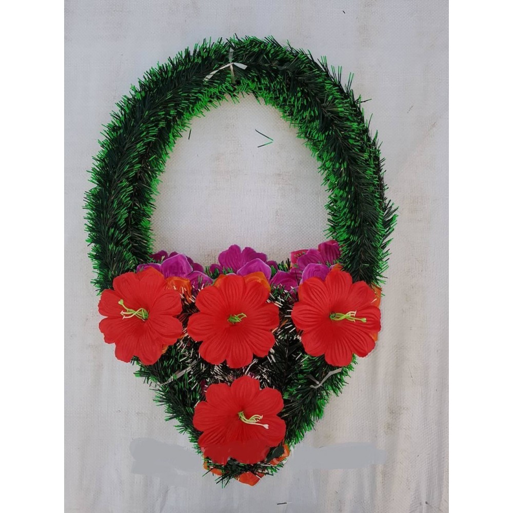 РИТУАЛЬНЫЙ ВЕНОК "КАПЛЯ" С ОДИНАРНЫМ ОКРУГЛЫМ ЦВЕТКОМ (8 ЛЕПЕСТКОВ) 45х27см