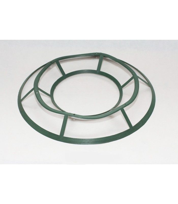Заготовка для венка выполнена в форме круга, изготовлена из пластика. Предназначена для дальнейшего декорирования искусственной хвоей и цветами. Диаметр заготовки составляет 38 см.