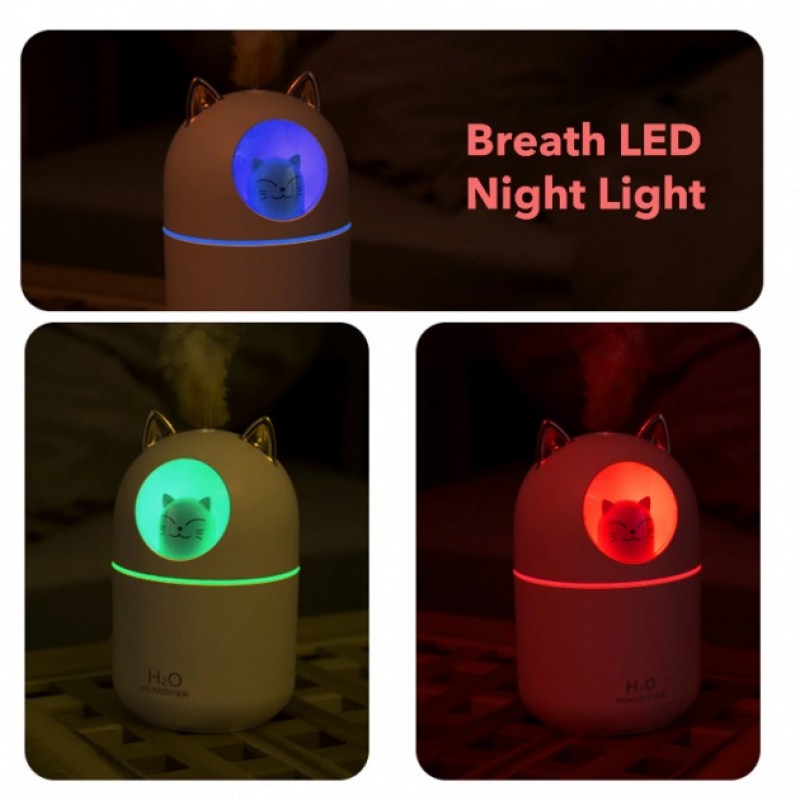 Увлажнитель воздуха Humidifier H2O предназначен для того, чтоб комфортно чуствовать себя в помещении. Мини-увлажнитель воздуха H2O Humidifier будет поддерживать необходимый для хорошего самочувствия уровень влаги в любом удобном для вас месте: на отдыхе, на даче, в гостях, в офисе и тд. Благодаря его компактности, он станет незаменимым помощником везде, где бы вы не находились. Для работы увлажнитель подключается к зарядке для мобильного телефона, также может работать от ноутбука, компьютера, power bank. Увлажнитель может послужить и диффузором, если в контейнер с водой капнуть несколько капель эфирного масла. Тогда ваша комната будет наполнена приятным ароматом. Работает устройство максимально просто. Достаточно налить в резервуар воды и подключить к источнику питания. Нажатием кнопки на задней части корпуса увлажнитель активируется. Управление: Одно нажатие – непрерывное распыление; Два быстрых нажатия – прерывистое распыление; Если зажать на 3 сек – включается подсветка, повторное зажатие на 3 сек- выключение. Увлажнитель воздуха Humidifier – просто необходимая вещь в доме, где есть ребенок, он поможет создать оптимальный микроклимат и обеспечит необходимую влажность в помещении, а разноцветная подсветка создаст приятную и комфортную атмосферу и поможет ребенку быстрее уснуть. Увлажнитель также может стать красивым и оригинальным подарком и украсить собой любой интерьер. Функции: Увлажняет воздух; Подходит для помещений площадью до 12 м², а также для машины; Может применятся для натуральной ароматизации (маслами) воздуха; Диффузор также имеет подсветку и может быть вам ночником