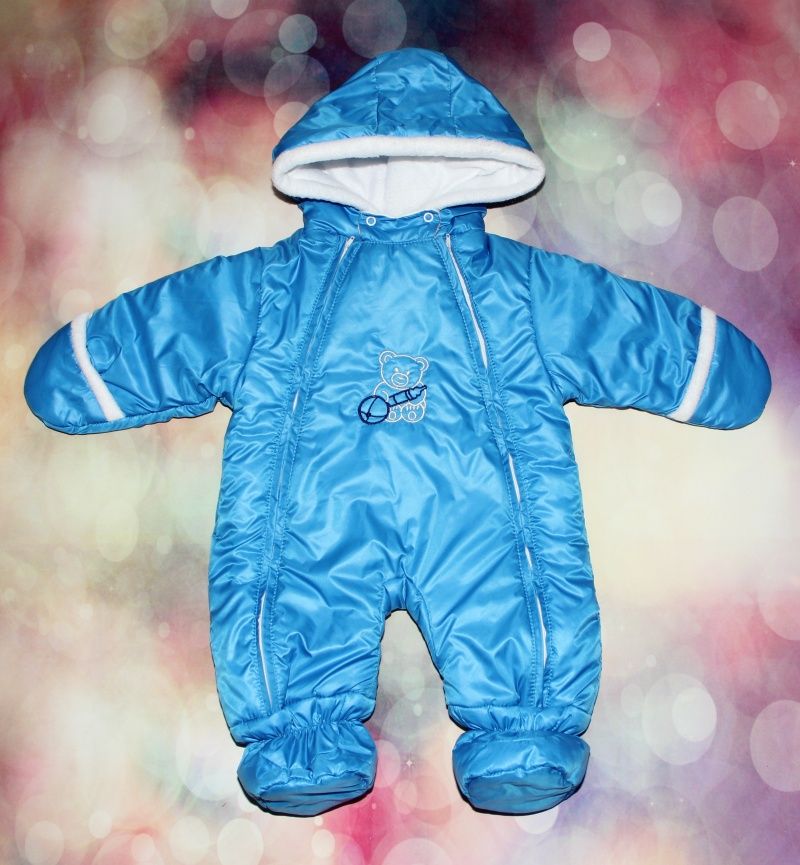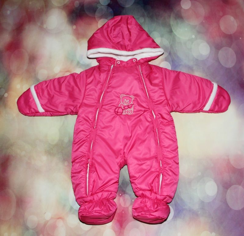 Комбинезон для новорожденных весна/осень (малиновый, синий, белый) (плащевка, флис плотный) 1423, Размеры S, M
