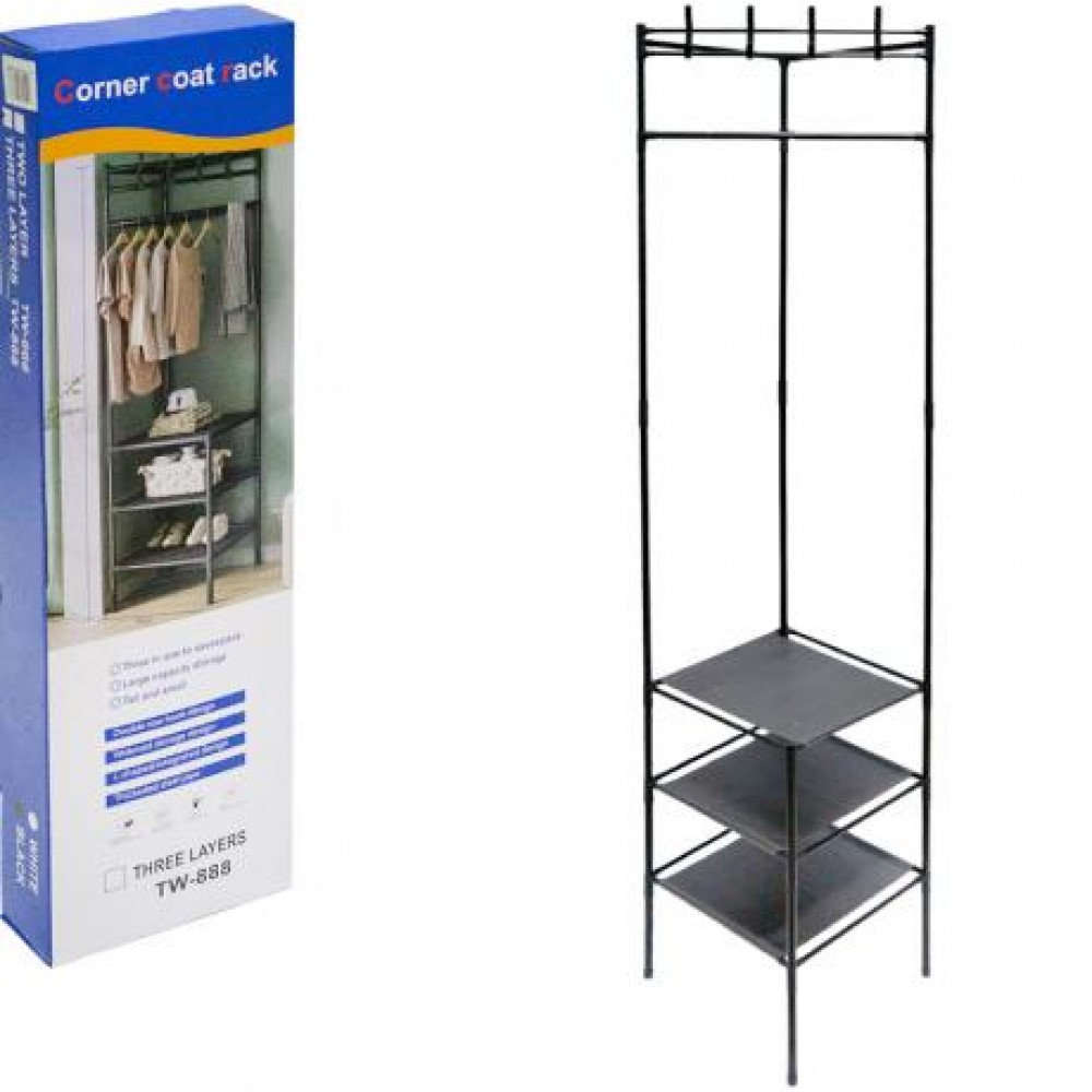 Кутова стійка-вішалка для одягу та взуття TW-888 — зручне рішення для компактного зберігання у передпокої, гардеробній, спальні або офісі. Розмір 188×40×40 см дозволяє ефективно використовувати кут приміщення. Модель має верхню перекладину з гачками та тканинні полиці для взуття, сумок і аксесуарів. Металевий каркас забезпечує стійкість і довговічність, а тканинні полиці легкі та практичні у використанні. Лаконічний дизайн легко поєднується з будь-яким інтер’єром. Стійка проста у збірці, постачається в розібраному вигляді. Розмір упаковки: 57×17×6 см. Ідеальний варіант для оптових закупівель.
