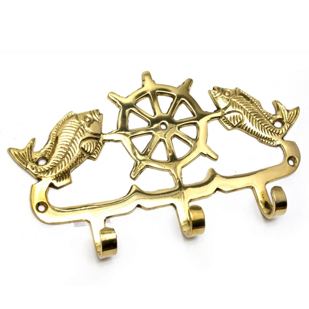 Ключница вешалка Штурвал с рыбами бронза (19х10.5х2 см) код 29300