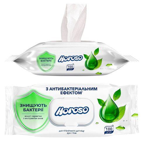Салфетки влажные с антибактериальным эффектом экстракт алоэ Horoso 100шт/уп