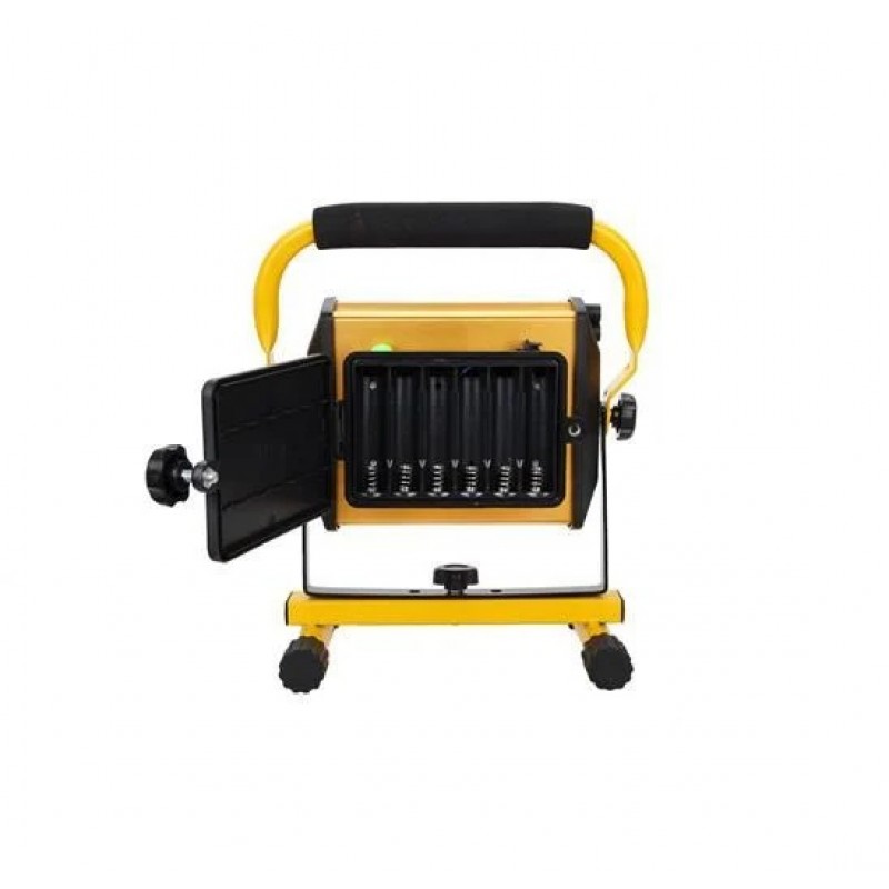 Светодиодный прожектор 100 Ватт представляет собой светодиодную матрицу в металлическом корпусе с отсеком для аккумуляторов типа 18650. Работает прожектор как от 1го так и 2х и 6х аккумуляторов, их количество влияет на длительность автономной работы. Зарядка происходит от сети 220 В, с частотой 50-60 Гц, ( ЗУ в комплекте). Прожектор имеет 4 режима работы - 50% / 75% / 100% мощность свечения , Проблесковый маячок (перемигивание). В конструкции прожектора используется алюминиевый рассеиватель, что обеспечивает угол подсветки 120°. Поскольку прожектор предназначен в основном для наружного применения, конструкция, благодаря системе IP65, является влагостойкой, легко переносящей любые атмосферные явления. Прожектор отлично работает в температурном режиме от ― 30°С до +45°С. Светодиодные прожекторы 100w также подойдут для освещения небольших территорий, например дачного участка , площадки перед домом, подсветки здания а так же станут не заменимы в походе или на рыбалке. Комплектация: фонарь со стойкой, аккумуляторы 6 шт , зарядное устройство от сети 220, зарядное устройство 12V