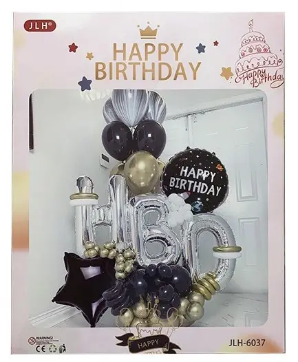 Арка гирлянда из воздушных шаров "Happy Birthday", серебро, черный, золото