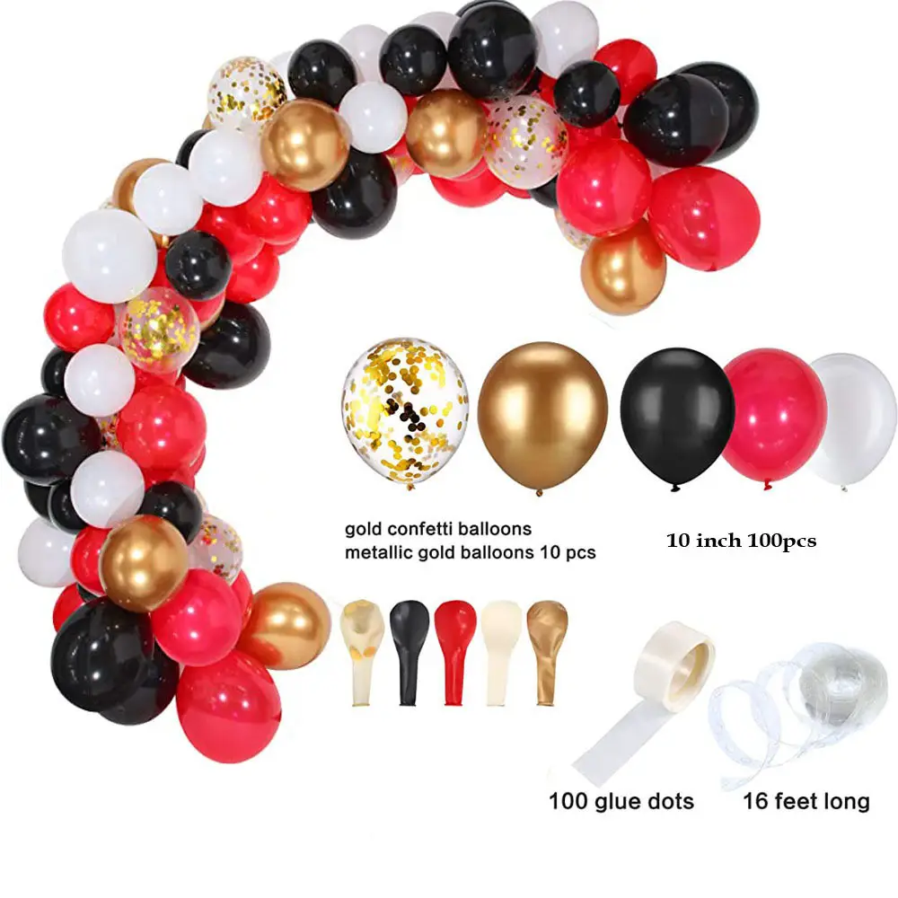 Арка гирлянда из воздушных шаров "Красный, чёрный, белый, золотой", 113 шт