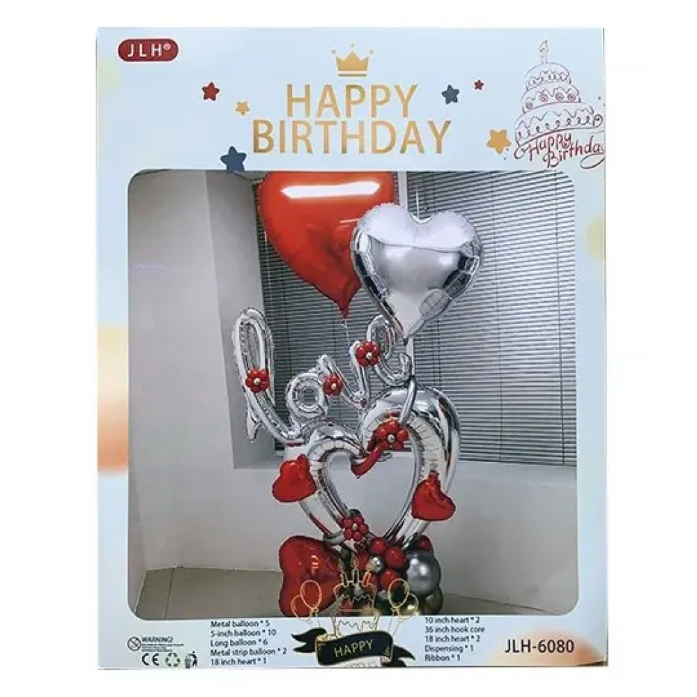 - 10 латексных шаров 5" двух цветов (красные пастель и серебро хром) в равних пропорциях.