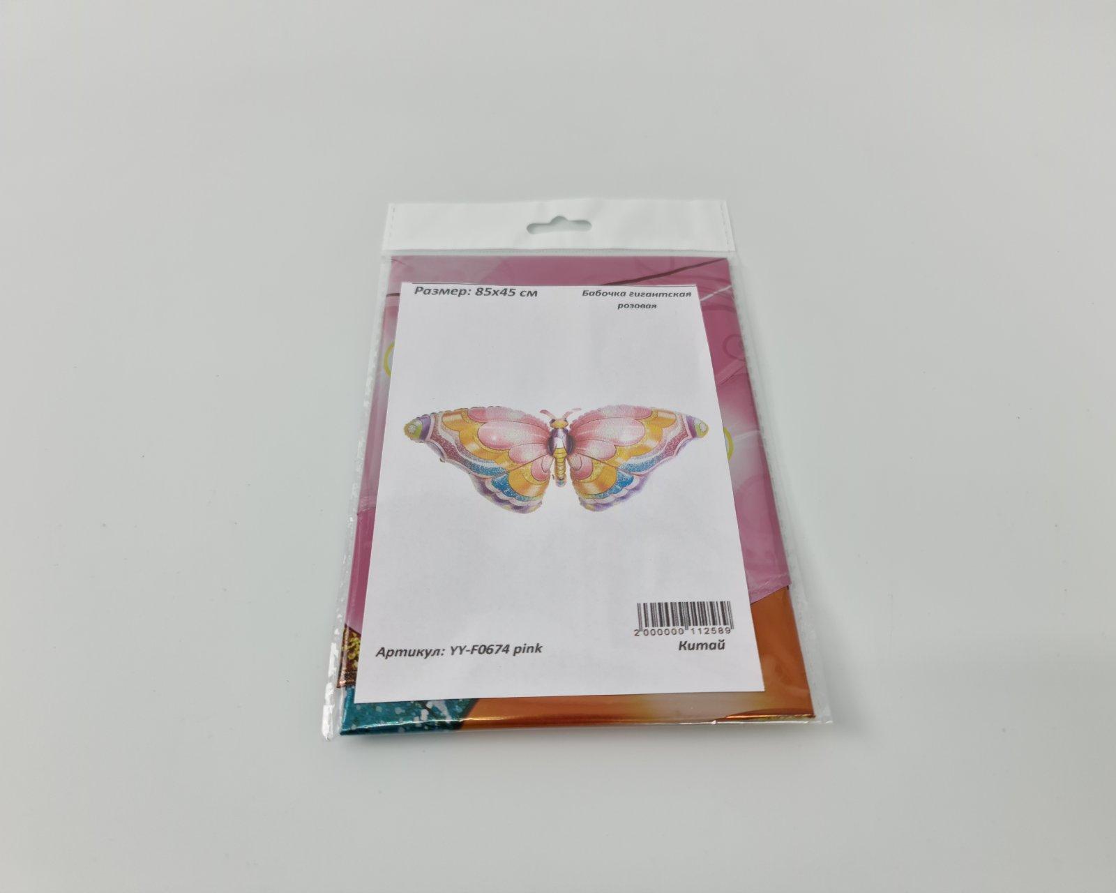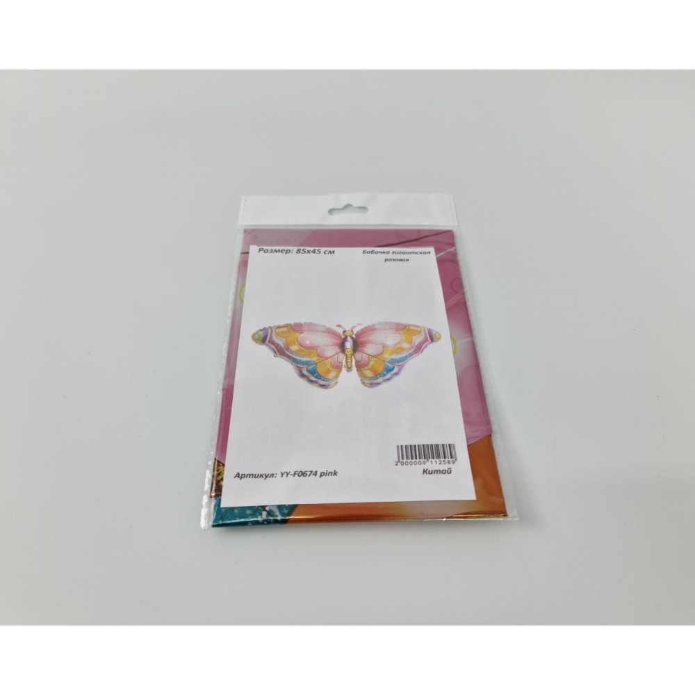 Фольгированный шар 85х45 см Бабочка гигантская розовая (Китай) в упаковке (1 пачка)