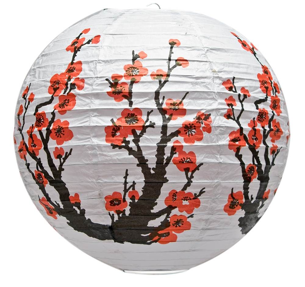 Фонарь белый бумажный "Сакура" диаметром 30 см - это изящный и символичный элемент декора, который привнесет нотку восточного очарования и красоты в ваше пространство.