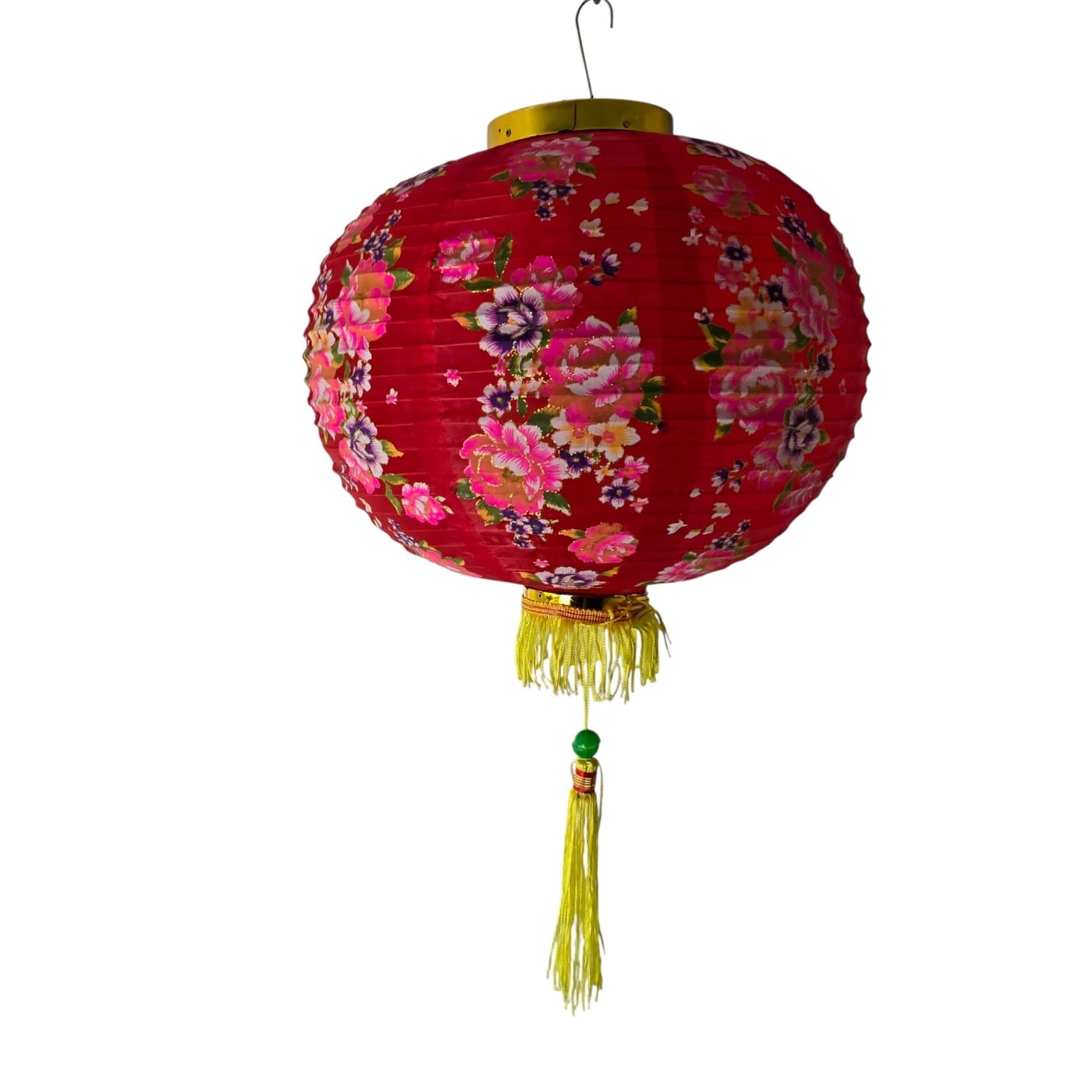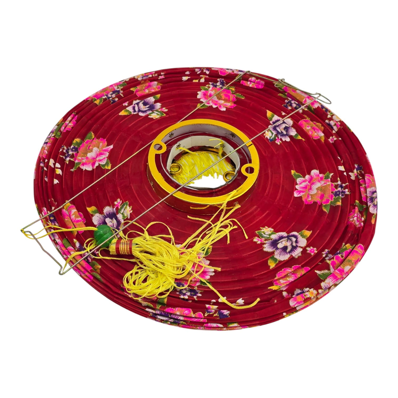 Складной подвесной фонарь в восточном стиле. Лёгкий металлический каркас держит форму, плотный красный шёлк с цветочным рисунком и декоративная кисть делают его ярким акцентом для зала, террасы, витрины или фотозоны. Сборка проста: раскройте фонарь, вставьте распорку и повесьте за крючок. Рекомендуется использовать в помещении либо под навесом.