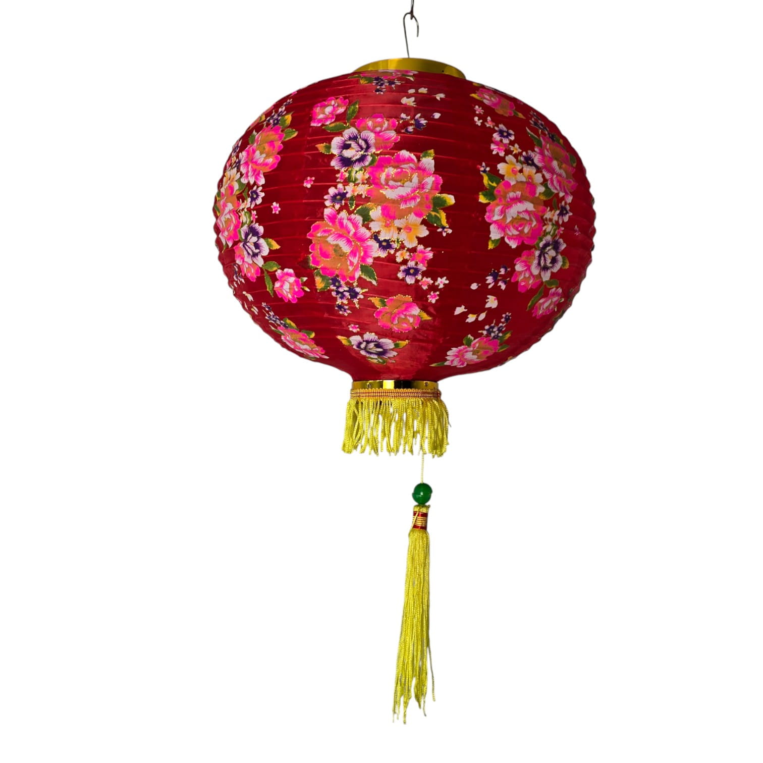 Шёлковый китайский фонарь 40 см с цветочным узором, красный
