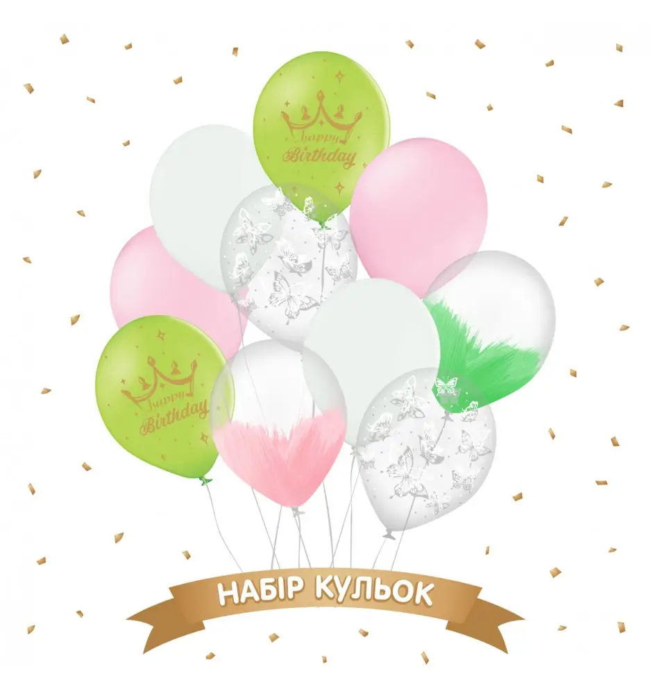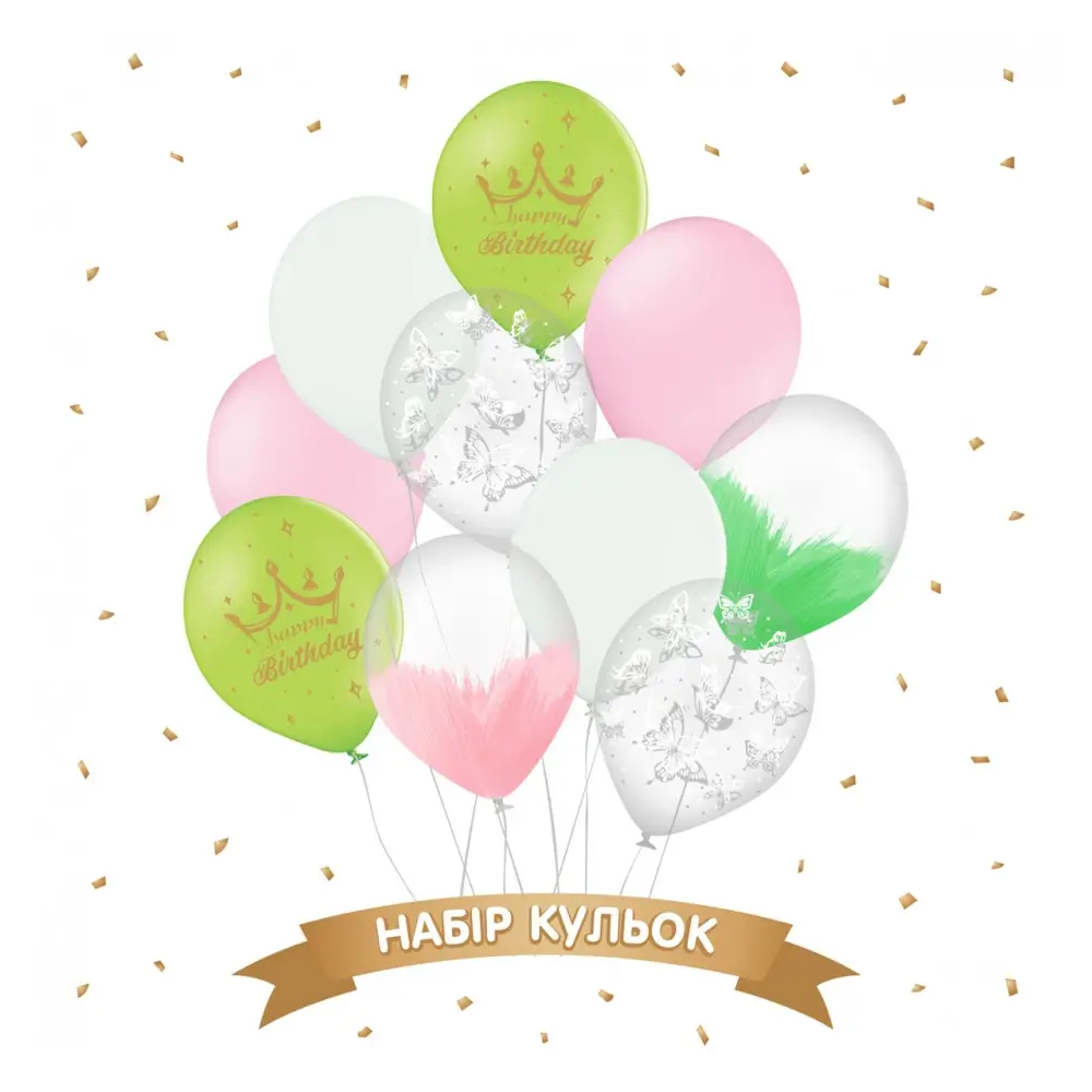 Набор шаров "Happy Birthday бабочки", браш,белый,розовый, 10 шт ТМ Sharoff