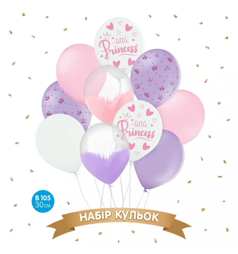 Набор шаров "Маленькая принцесса", браш, розовый, сиреневый, 10 шт ТМ Sharoff
