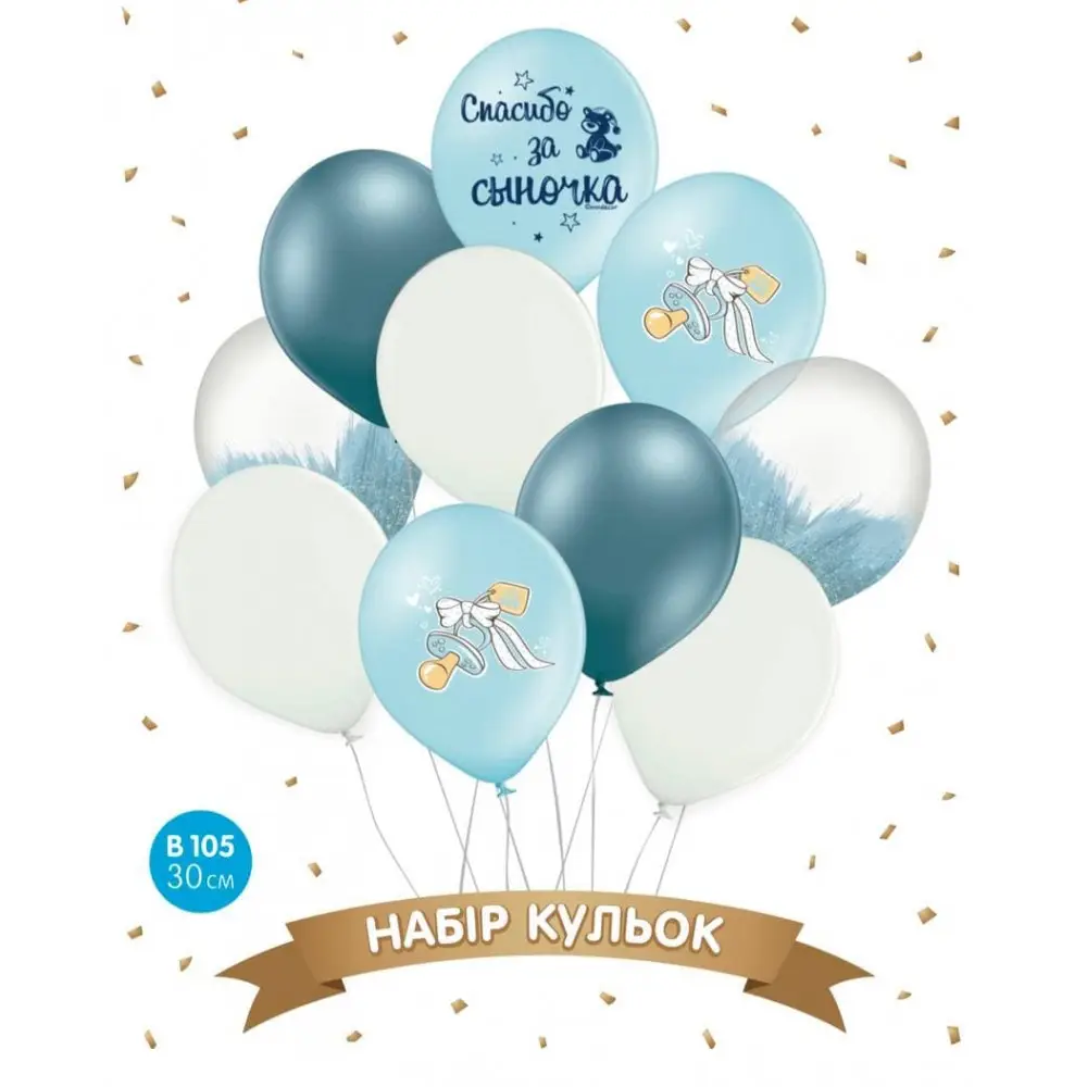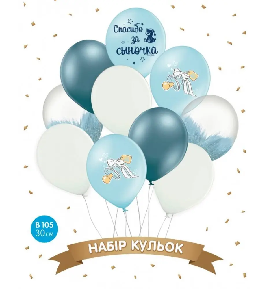 Набор шаров "Спасибо за сыночка", голубой, браш, хром голубой 10 шт ТМ Sharoff