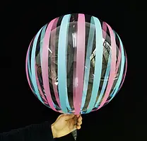 Шары баблс цветной с полосами- это настоящий хит этого сезона. Шар действительно розовый с белыми полосами, это смотрится очень необычно. Его можно использовать как шар сюрприз, наполнить серпантином, маленькими игрушками или же сделать композицию со светодиодами и наполнить гелием