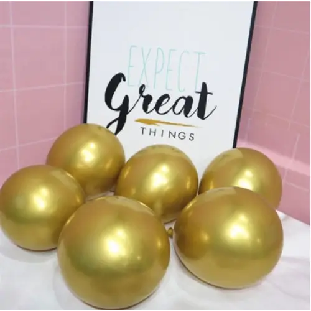Набор шаров "Happy Birthday золото", белый, золото хром 10 шт ТМ Sharoff