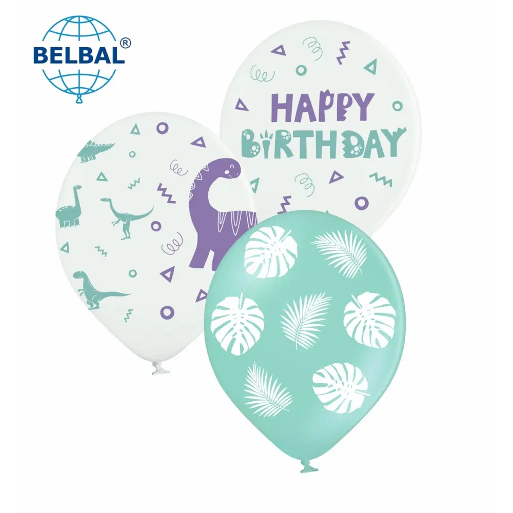 Воздушные шарики "Happy Birthday dino" 12" (30 см) ТМ Sharoff, В упаковке 25 штук
