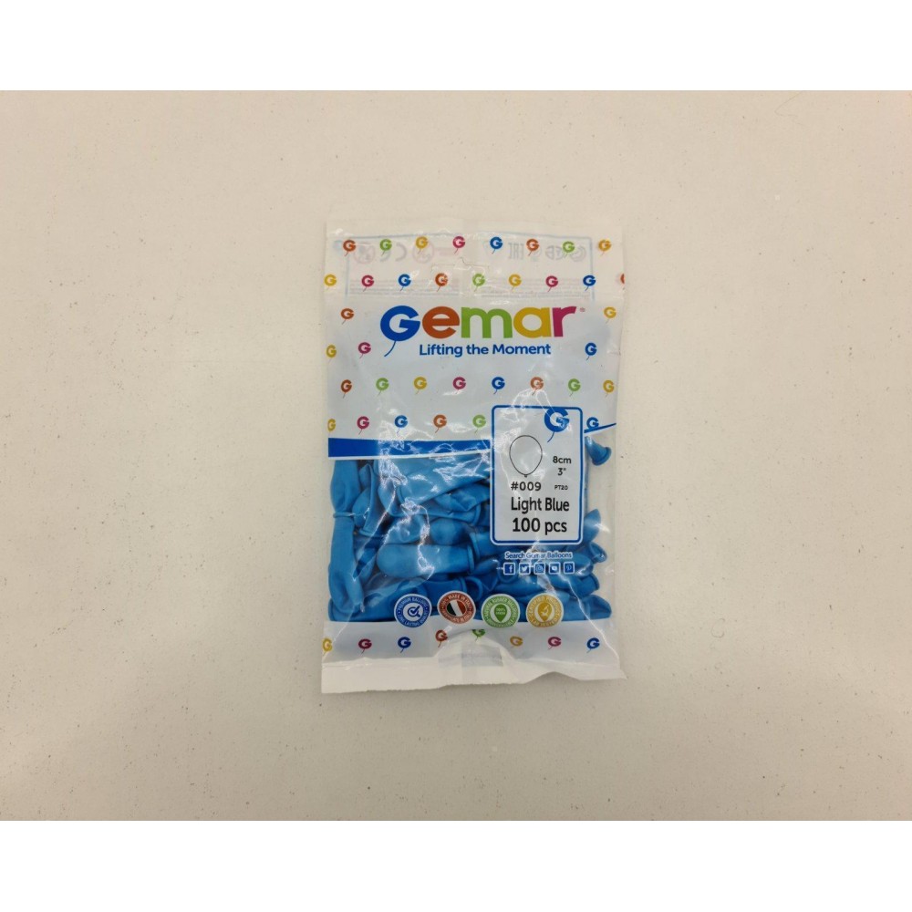 Воздушные шарики пастель голубые 3" (8 см) латексные бомбочки 100 шт Gemar (1 пачка)