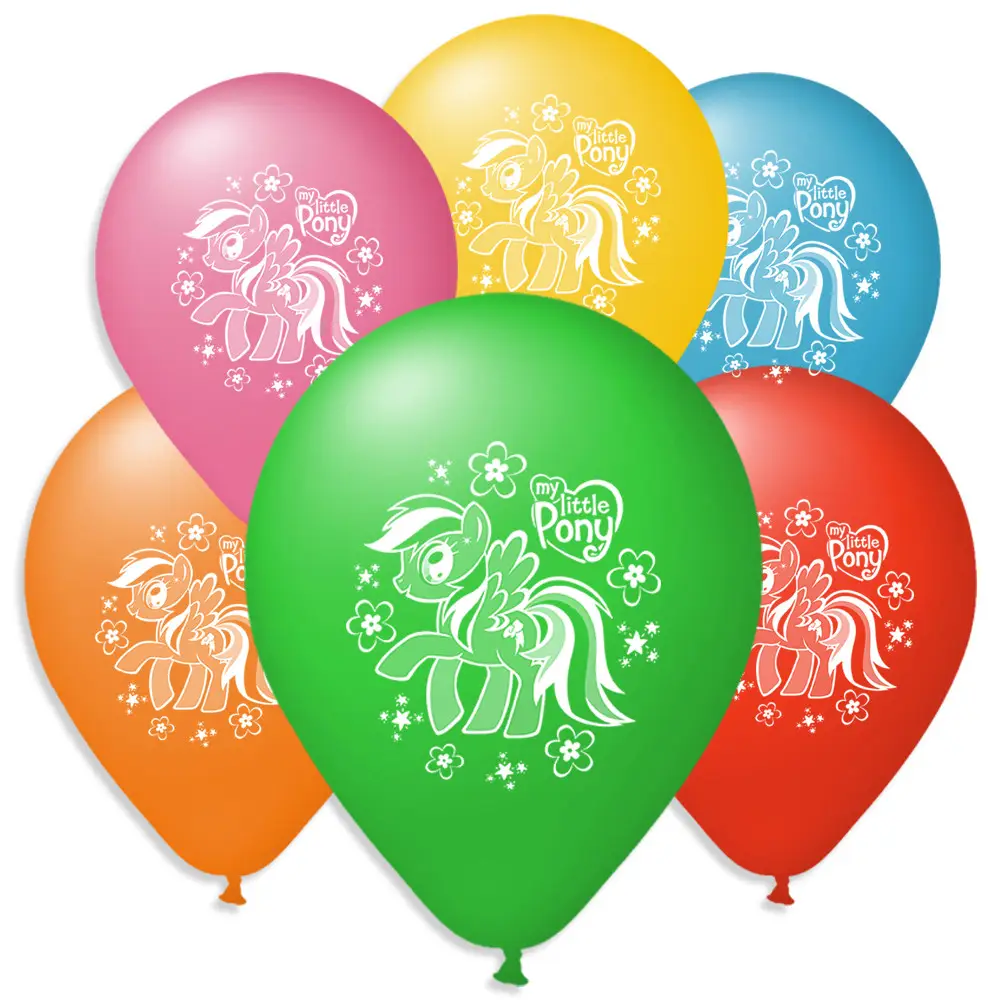 Воздушные шарики пастель шелкография Пони 10" (25 см), В упаковке ассорти 100 штук