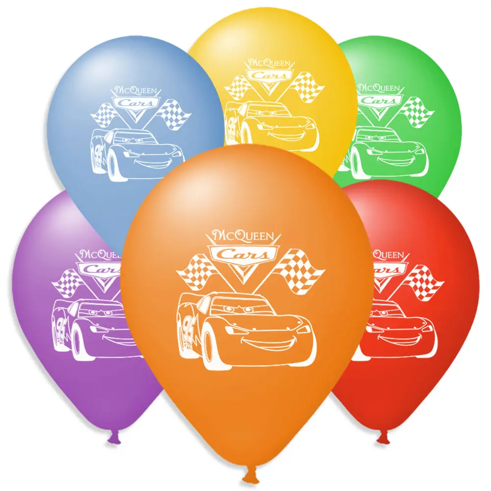 Воздушные шарики пастель шелкография Тачки 10" (25 см), В упаковке ассорти 100 штук