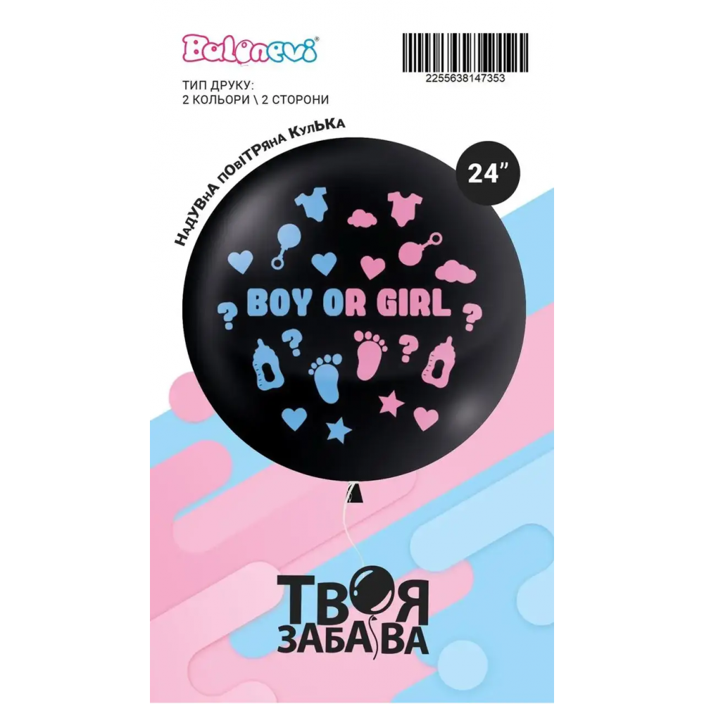 Воздушный шар "Boy or Girl" 2цв/2ст 24" (60 см) в упаковке ТМ Твоя Забава
