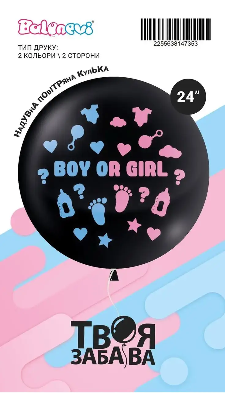 Воздушный шар "Boy or Girl" 2цв/2ст 24" (60 см) в упаковке ТМ Твоя Забава