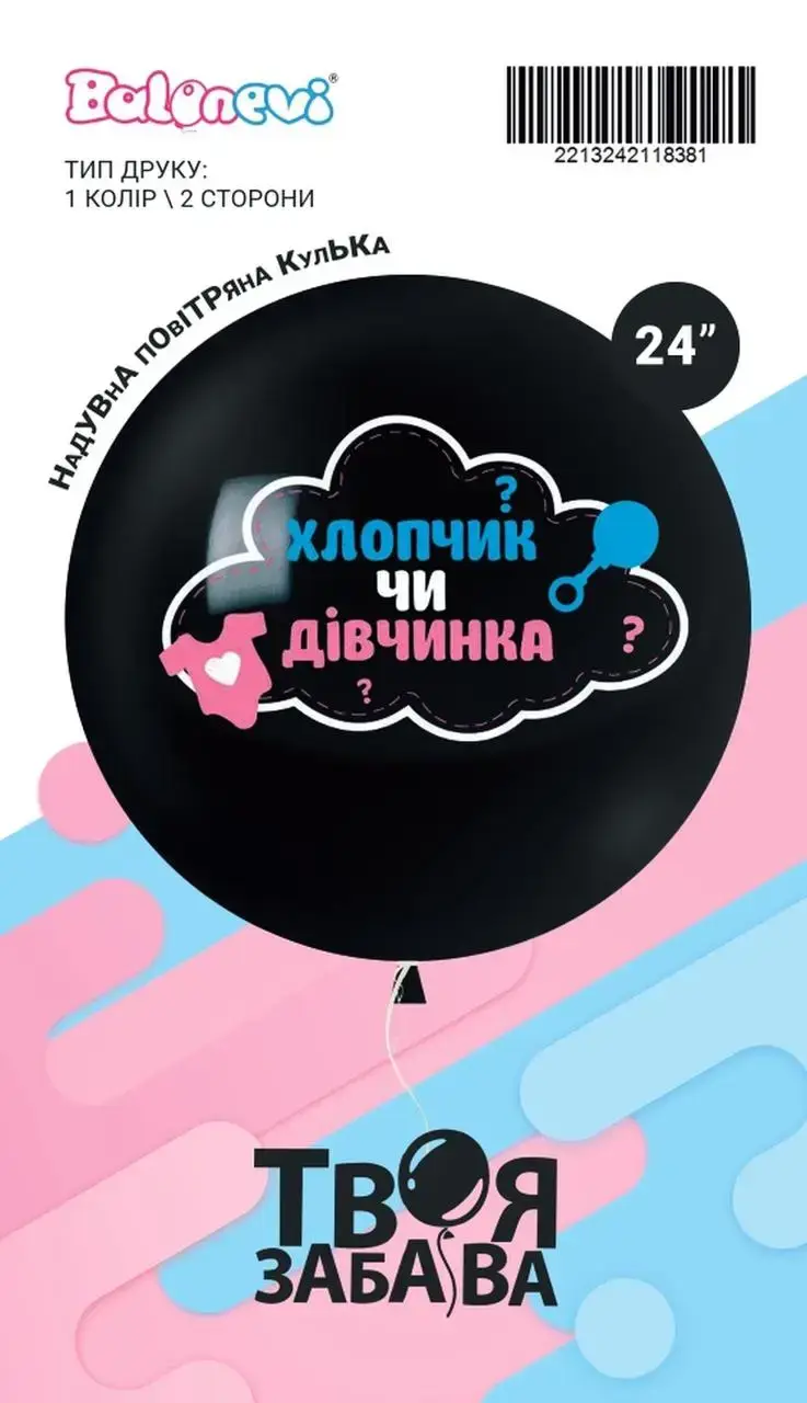 Воздушный шар "Хлопчик чи дівчинка" 1цв/2ст 24" (60 см) в упаковке ТМ Твоя Забава