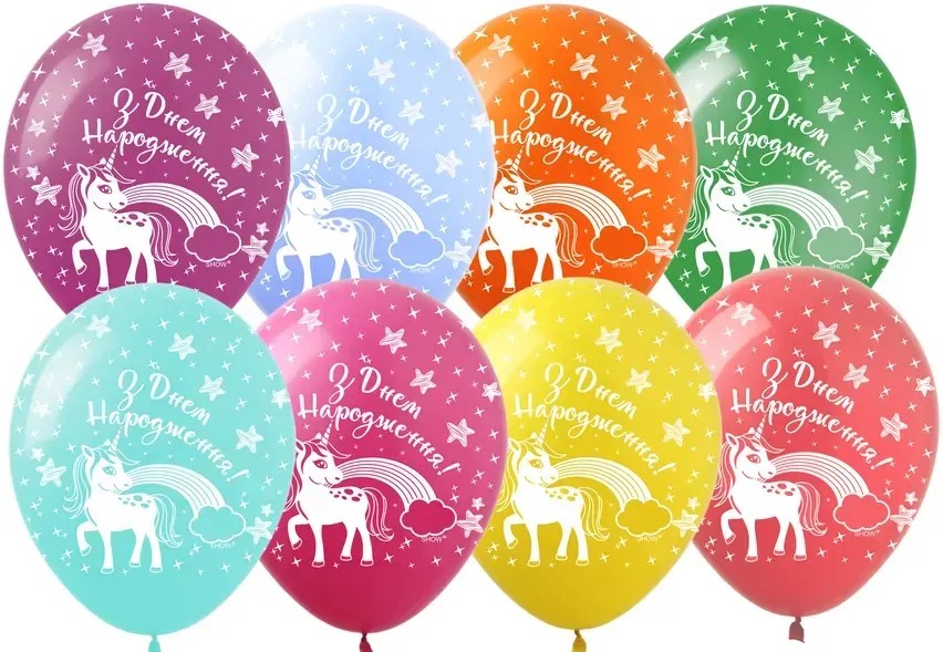 Шарики 12" (30см) "С Днем Рождения единорожка" 1-стор 10шт Разноцветный Pelican (828459)