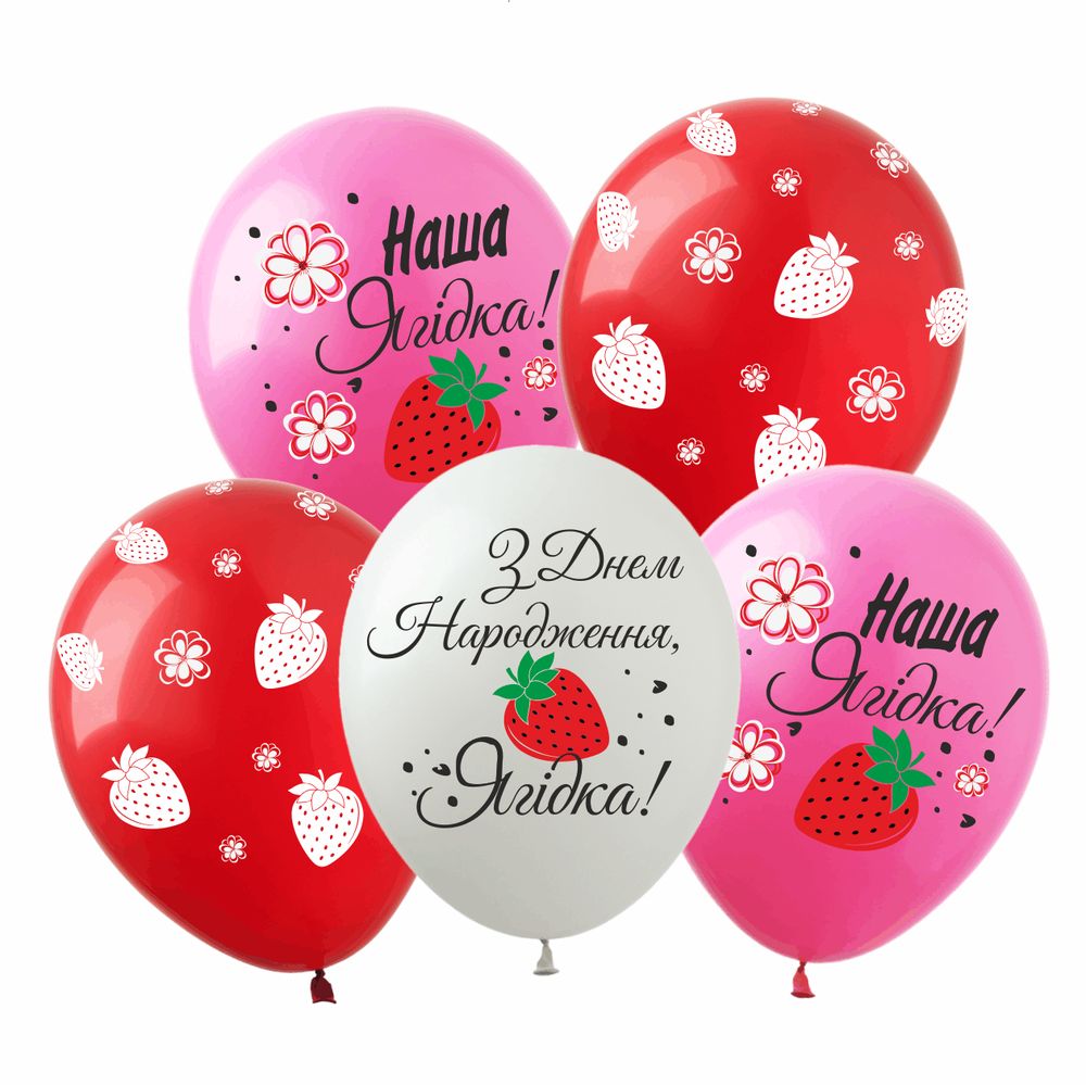 Шарики латексные 12"(30сm) "С Днем Рождения Ягодка" макарун 1-стор 10шт (8213812)