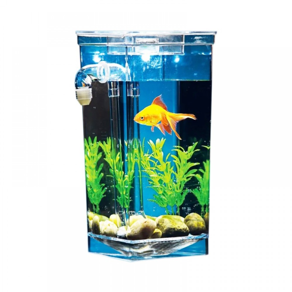 Вы хотите научить Вашего ребенка самостоятельности, ответственности и раздумываете какого домашнего питомца стоит для этого завести? Ведь именно домашние животные несомненно оказывают благотворное влияние на психическое и физическое развитие детей. Предложите Вашему ребенку в качестве первого опыта уход за рыбками. Рыбки – идеальные домашние питомцы, они не доставят вам много хлопот! Кроме того, аквариум, наполненный разноцветными рыбками, завораживает и доставляет удовольствие не только детям, но и взрослым. Ведь наблюдение за аквариумными рыбками приносит расслабление и успокоение. Аквариум выполнен из прозрачного ударопрочного пластика, поэтому он безопасен для детей. В комплект входит все необходимое для его установки, в том числе камни на дно и одно растение. Вам остается только налить воды и запустить новых обитателей в аквариум. Система самоочищения очень проста: Вам просто нужно периодически доливать аквариум чистой водой. При этом, грязная вода со дна аквариума выливается через специальную трубку. Благодаря уникальной конструкции, система высасывает со дна аквариума излишки воды и все отходы. Вам не приходится систематически очищать стенки от налета из водорослей. Аквариум My Fun Fish оснащен светодиодной подсветкой, поэтому вам не придется самим искать для него источник освещения. Аквариум также может служить приятным успокаивающим ночником для детской спальни. Уход за рыбками доставит удовольствие не только детям, но и взрослым. Для людей с повышенной возбудимостью или испытывающим состояние постоянного стресса аквариум просто необходим как средство для релаксации – рыбки, словно немногословные друзья, способны выслушать все о Ваших проблемах и успокоить.