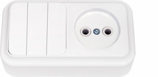 3В-РЦ-525 Выключатель тройной + розетка наружный. Беларусь. Напряжение: 220..250 В. Номинальный ток выключателя: 10 А. Номинальный ток розетки: 16 А. Частота тока: 50 Гц. Климатическое исполнение: УХЛ4. Степень защиты: IP20. Масса: 0.14 кг. Габаритные размеры: 117х65х29 мм. Установочные размеры: 97х47 мм. Сечение проводников выключателя: от 0,75 до 2,5 мм². Сечение проводников розетки: от 0,75 до 2,5 мм². ТУ РБ: 03968179.072-94. Материал крышки: Пластик ABS. Материал основания: Полиамид. Материал контактной группы: Латунь