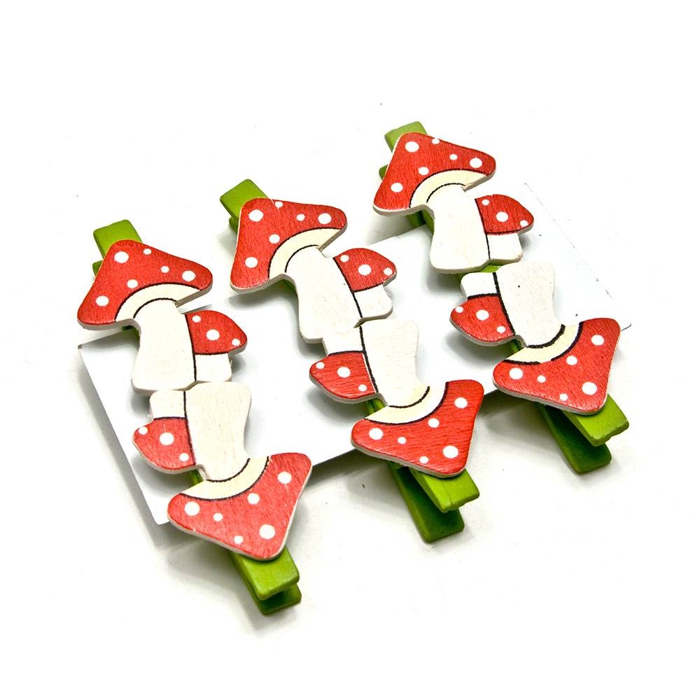 Украшалочки Мухоморы прищепка дерево (н-р 6 шт) ЦЕНА ЗА НАБОР код 26018