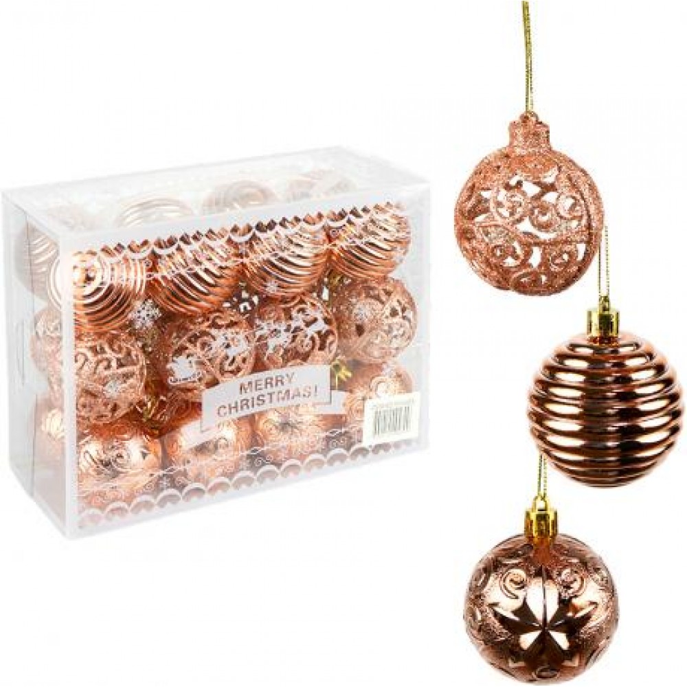 • Набір новорічних куль 24шт D6см Рожеве Золото YH-9469